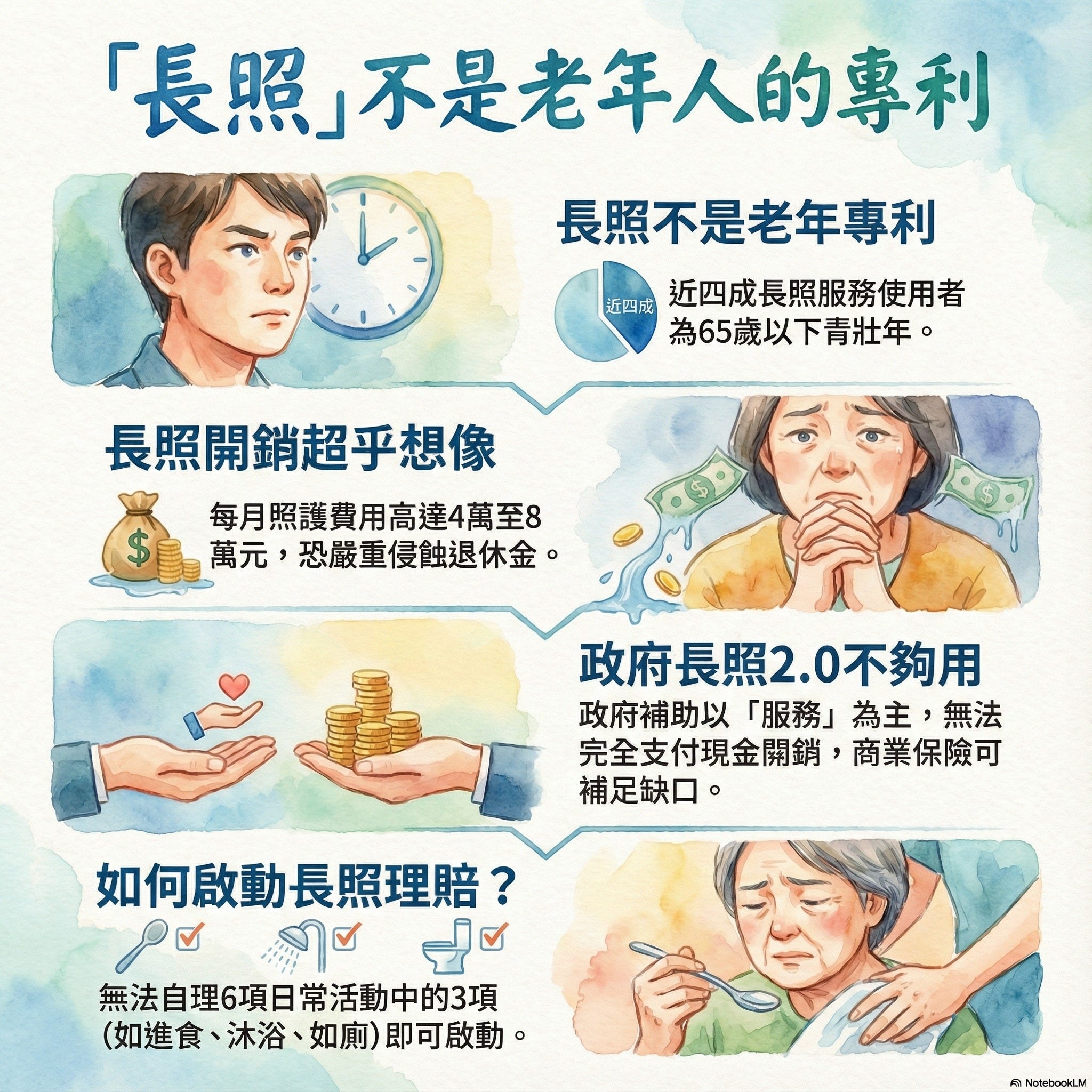 「不管你現在有沒有錢,你孩子混得好不好,你的孩子未來最大的風險,就是你和你的另一半有人陷入長照,因為這樣會完全拖住孩子的未來,你同意嗎?」